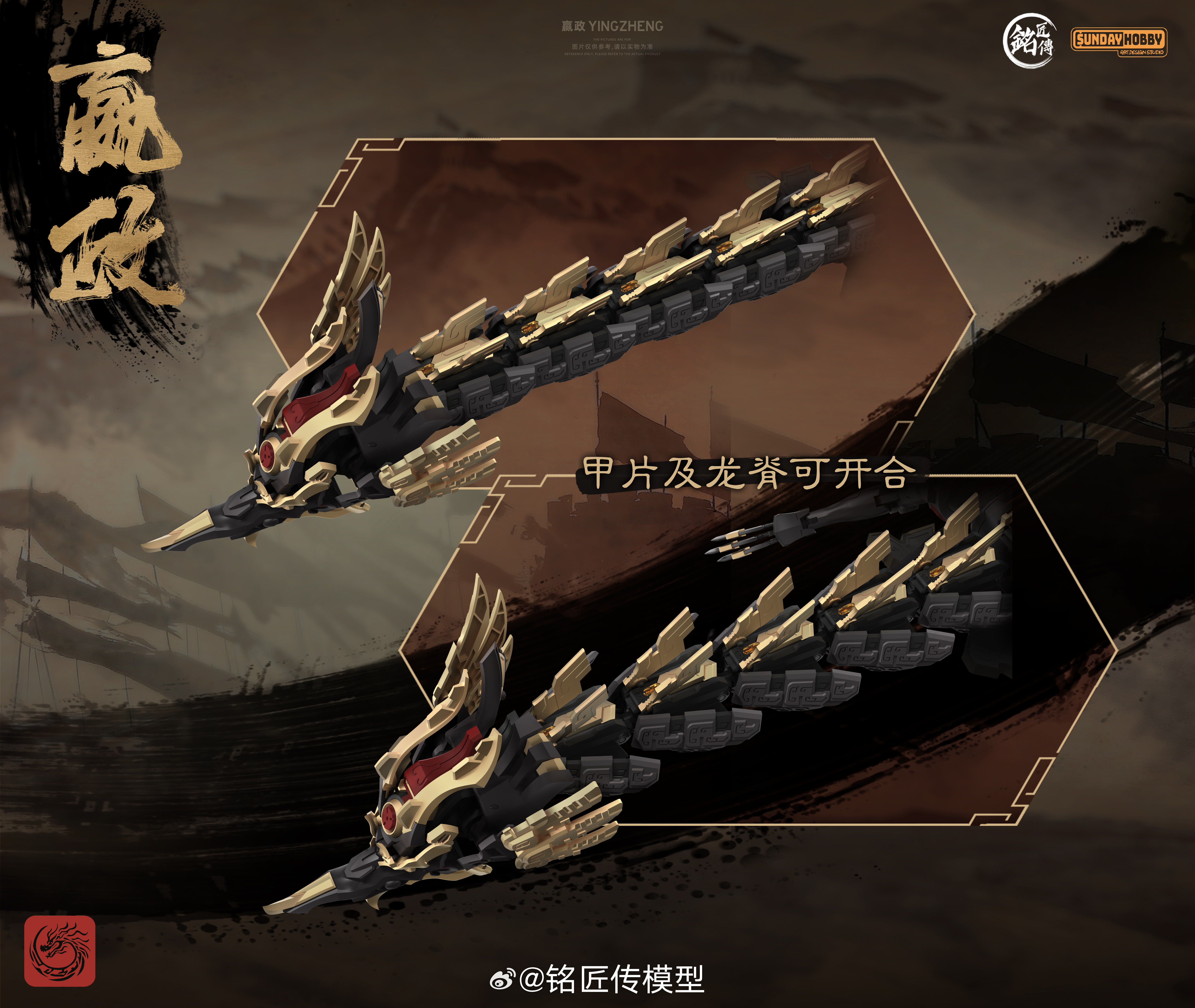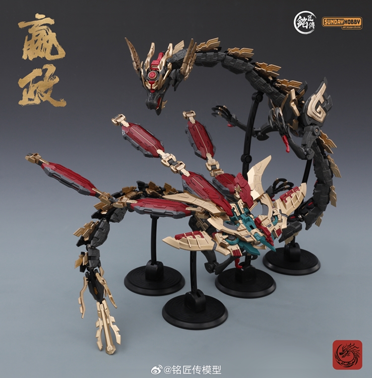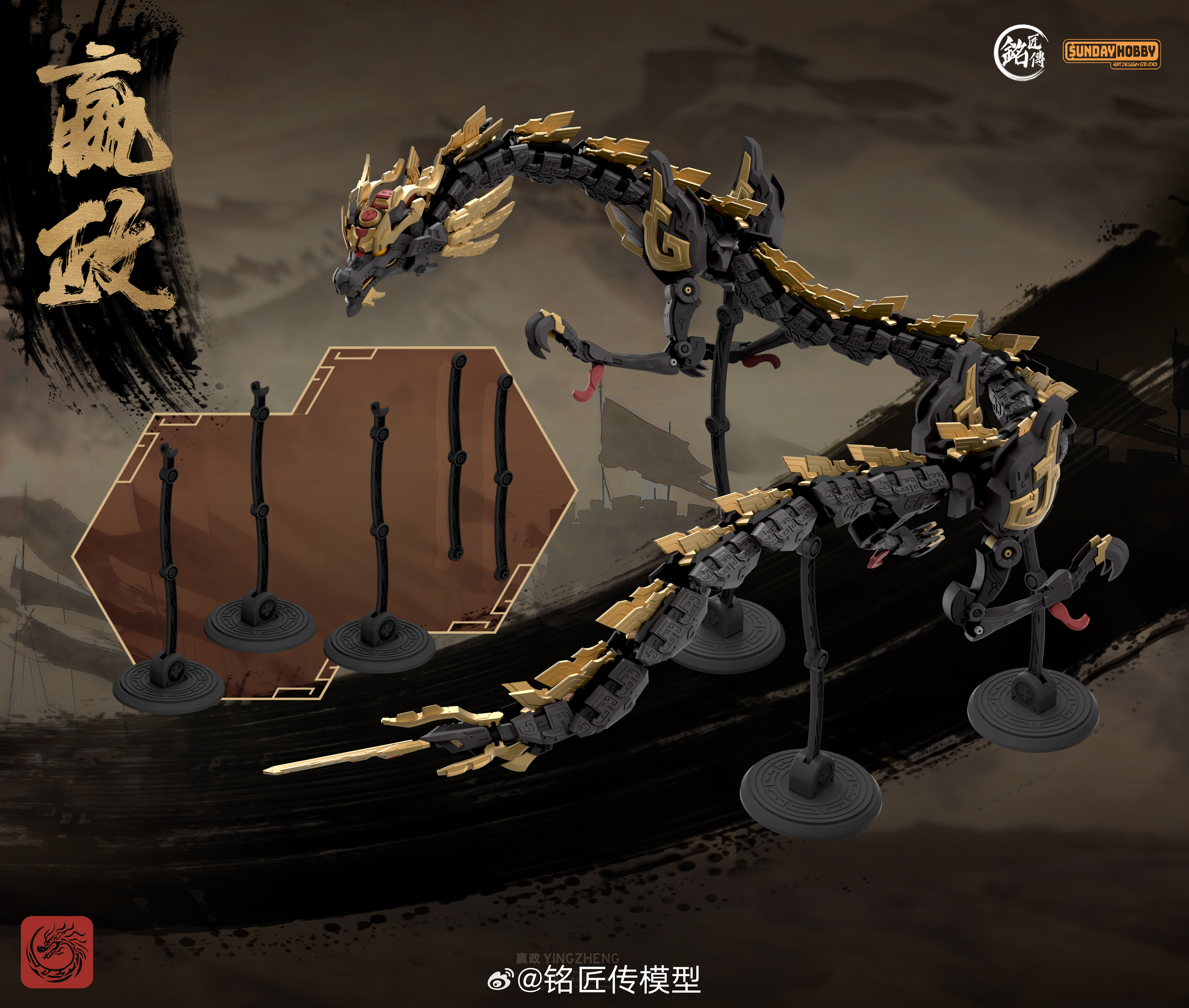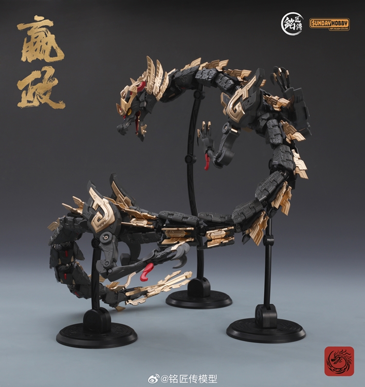 [始皇帝·嬴政]机甲主体x1,[玄鸟]背包x1,龙x1(*两种龙头及四肢样式),秦王剑x1,玉玺x1,竹简x1,长城地台x1,秦宫地台支架x1,龙之地台支架x3,水贴x1
