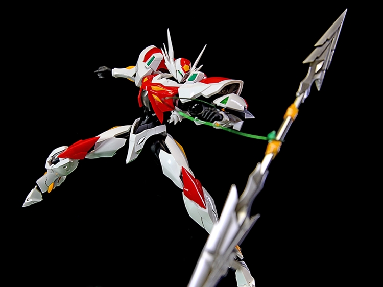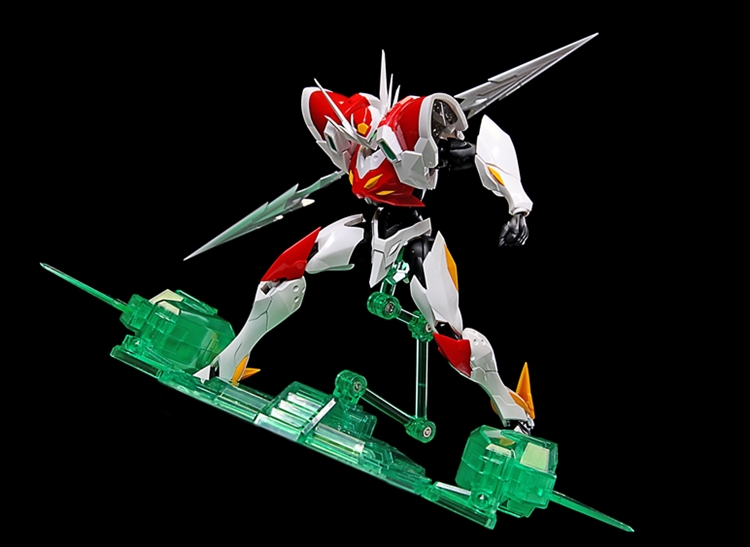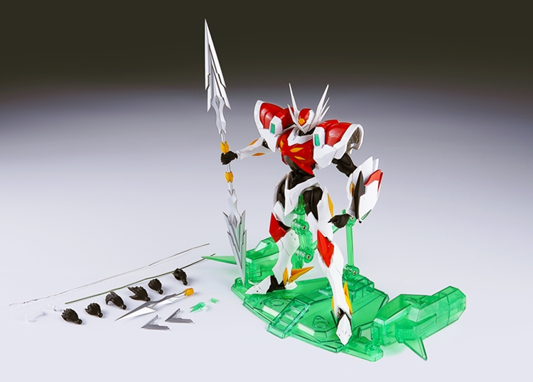 Additionally, a dedicated display stand inspired by "Pegas" is included. When used with the stand, it can replicate the launching pose of the Super Evolution Particle Cannon.