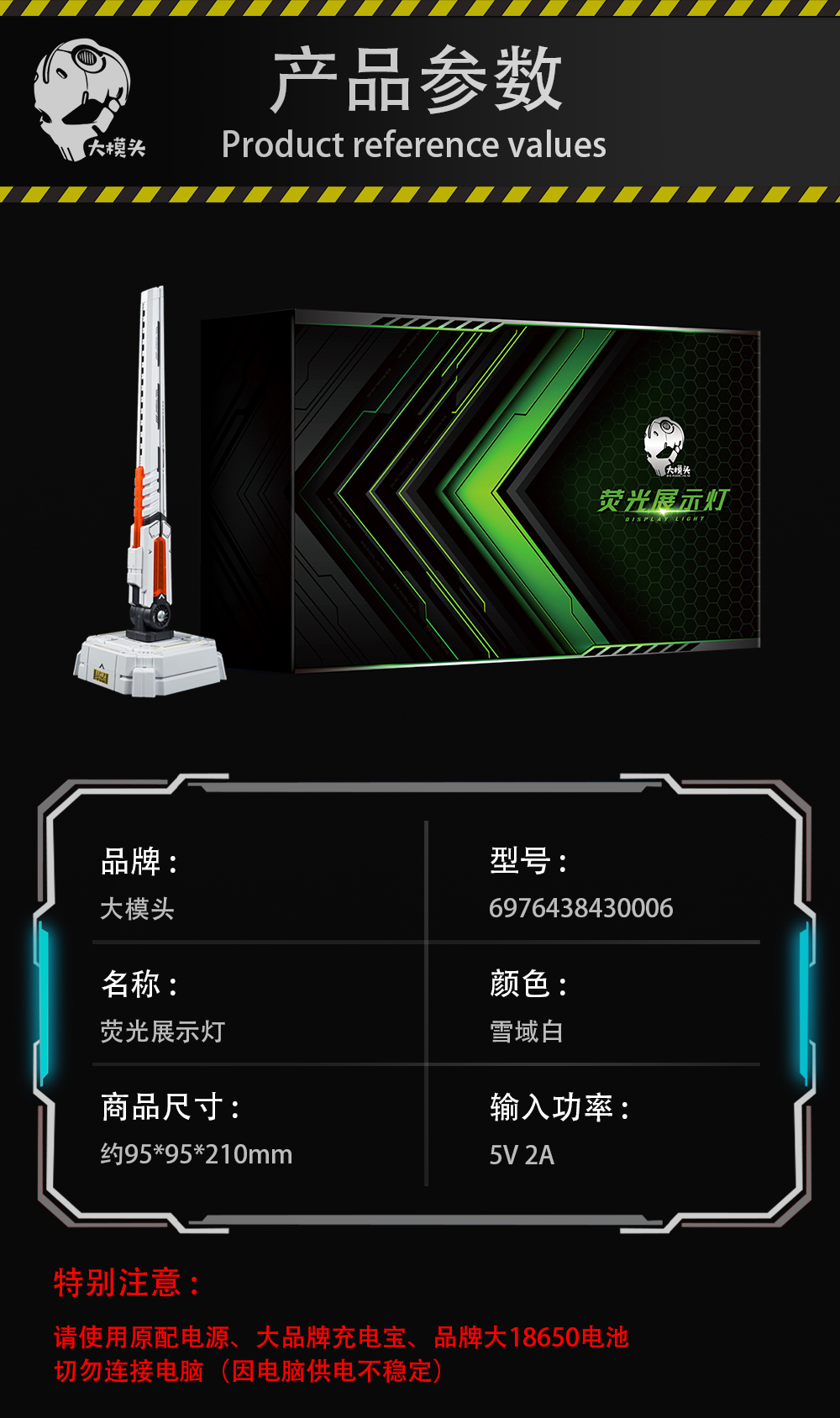 配置:灯臂x2、底座x2、电源线x2、电源x2、外甲x6、护目镜x1