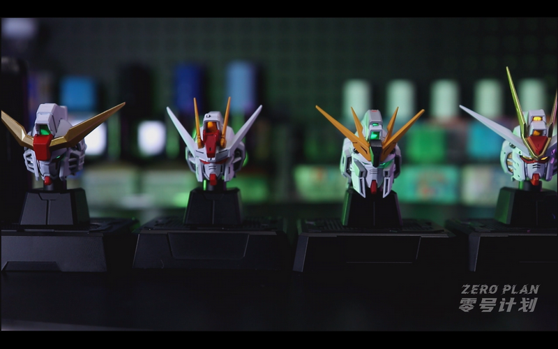 In terms of design language, all four head sculpts are "true MG level," created based on mechanical structure and intricate details. The head sculpt consists of over 20 parts, with all colors achieved through separate components. Additionally, the design incorporates light-guiding internal structures, allowing the mechanical keyboard's lighting to be showcased.