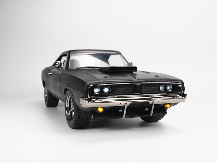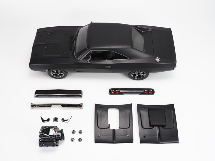All new black chrome finish for chrome plated parts such as: Engine, Wheels, Bumper, Exhaust & Grille