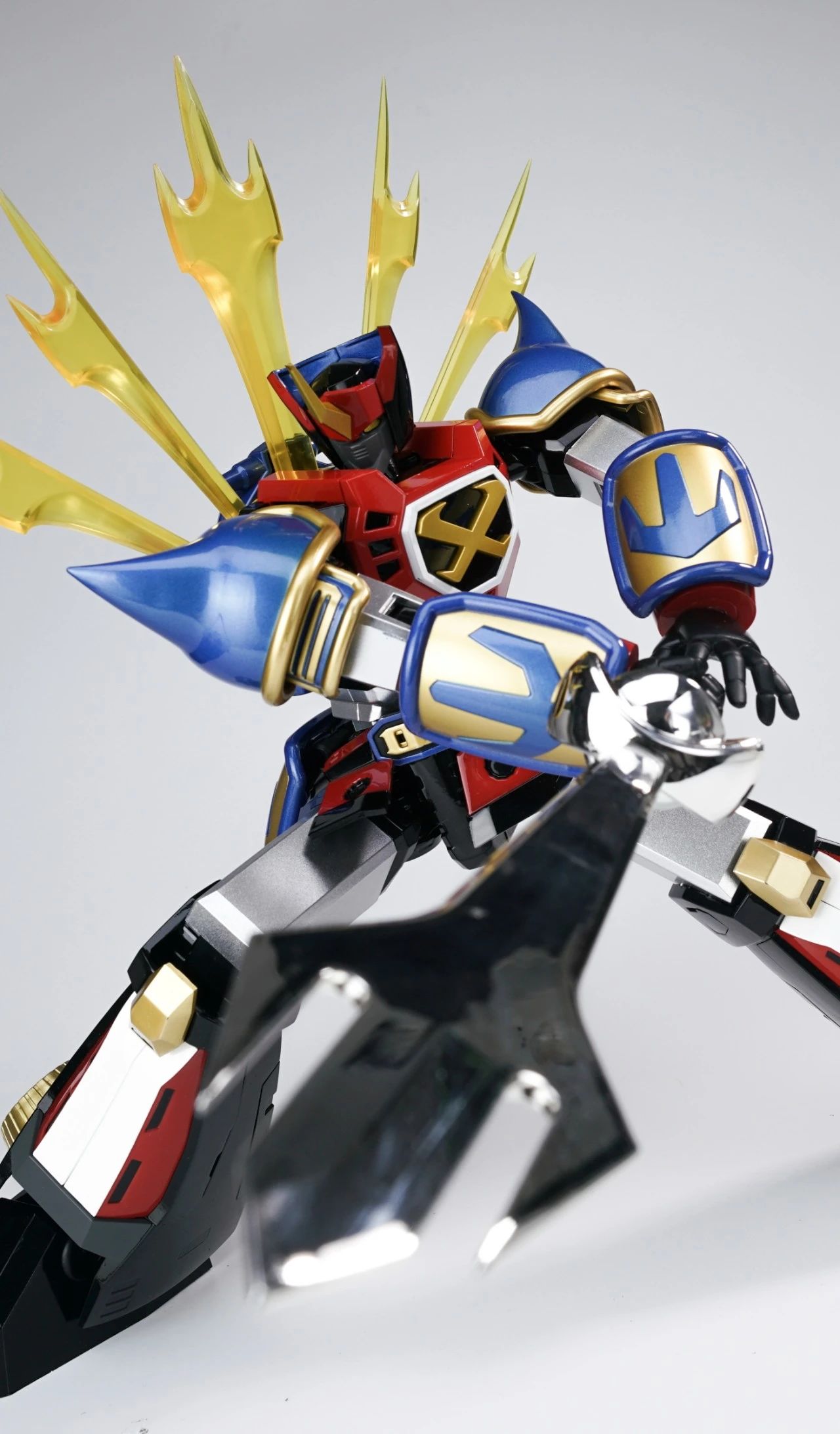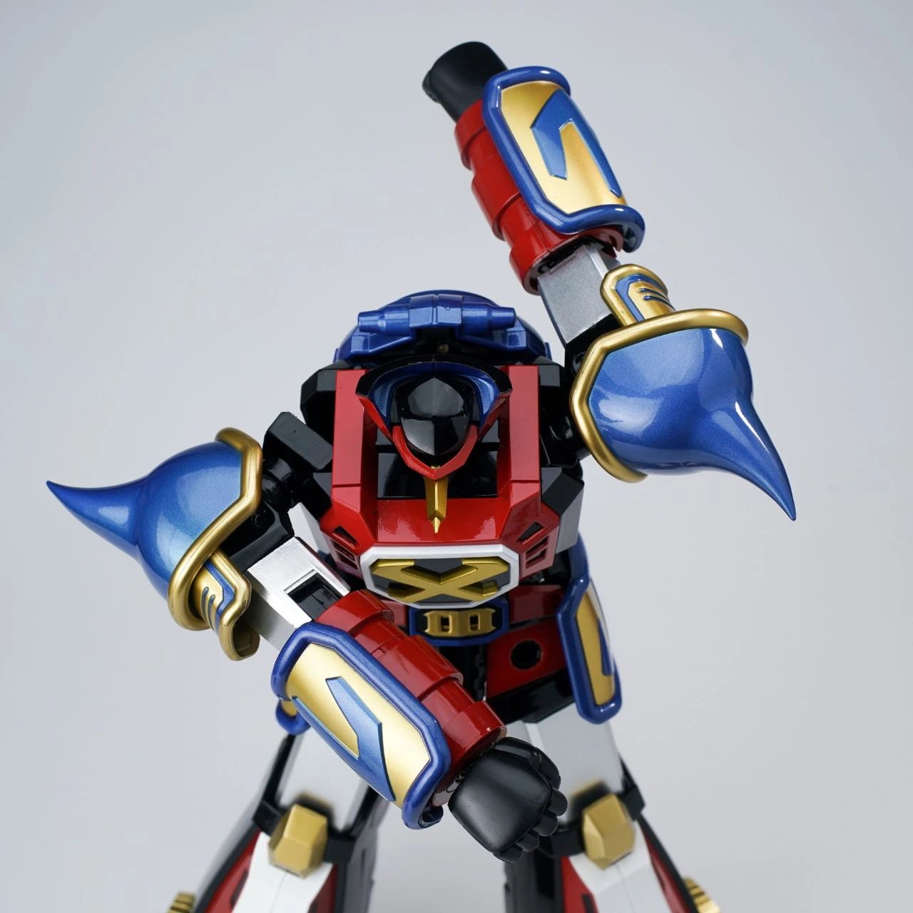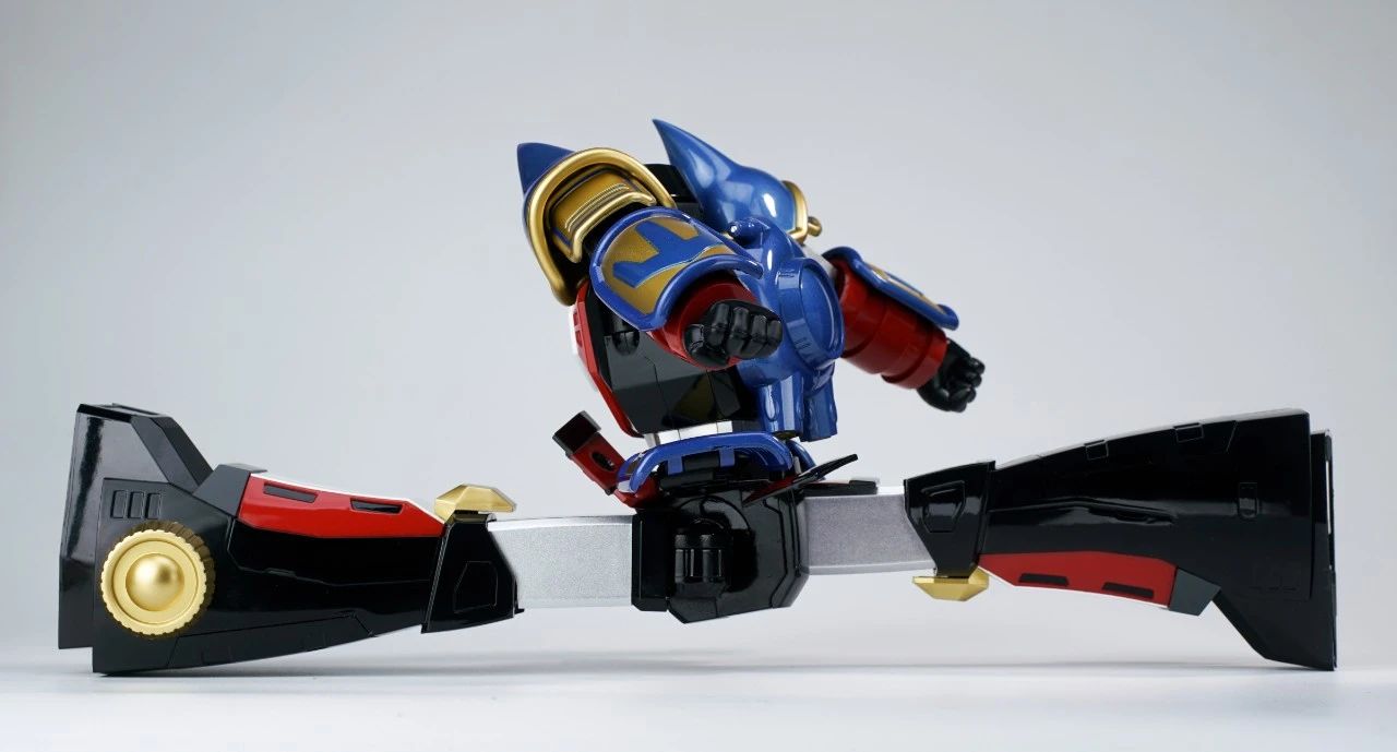 本体总高度约27cm,外观造型和涂装颜色和原版是几乎没有明显变化,整体的漆面主要是采用光泽亮面和金属色为主。各关节采用合金内嵌套POM件的结构,上手感觉是十分扎实,但并不会说过重,在重量配比上也是做了调整,更适合把玩。▼