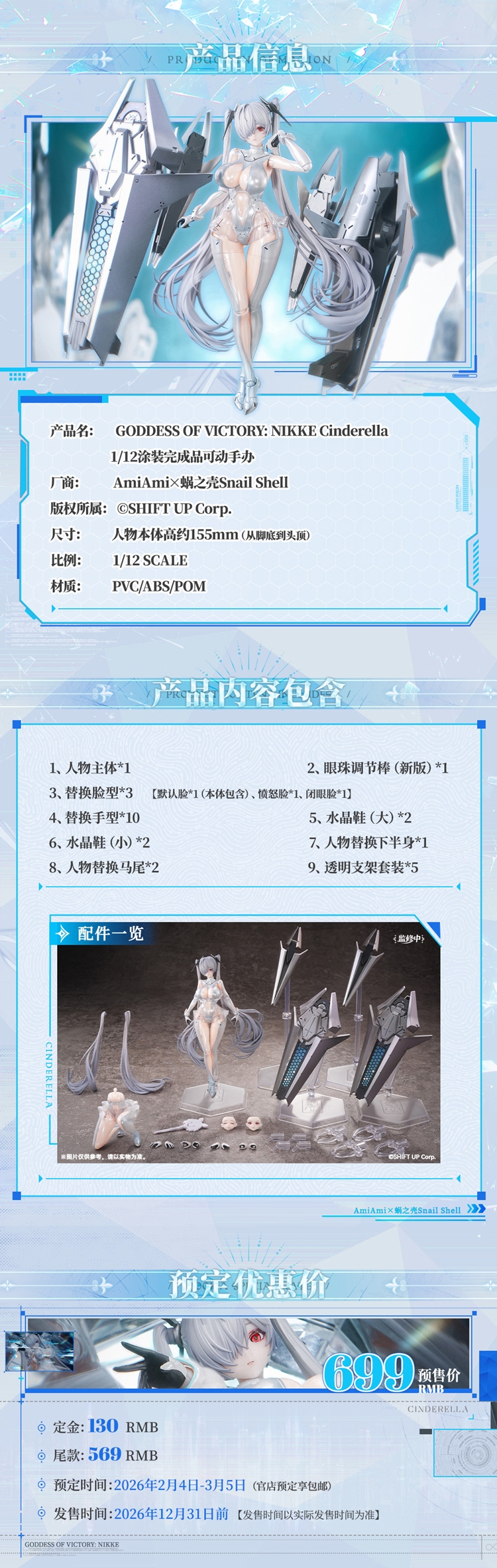 全新设计的素体充分还原了“Cinderella”特有的身材。从富有张力的身体曲线到手脚末端的造型细节,均经过精心打磨,力求完美呈现。
