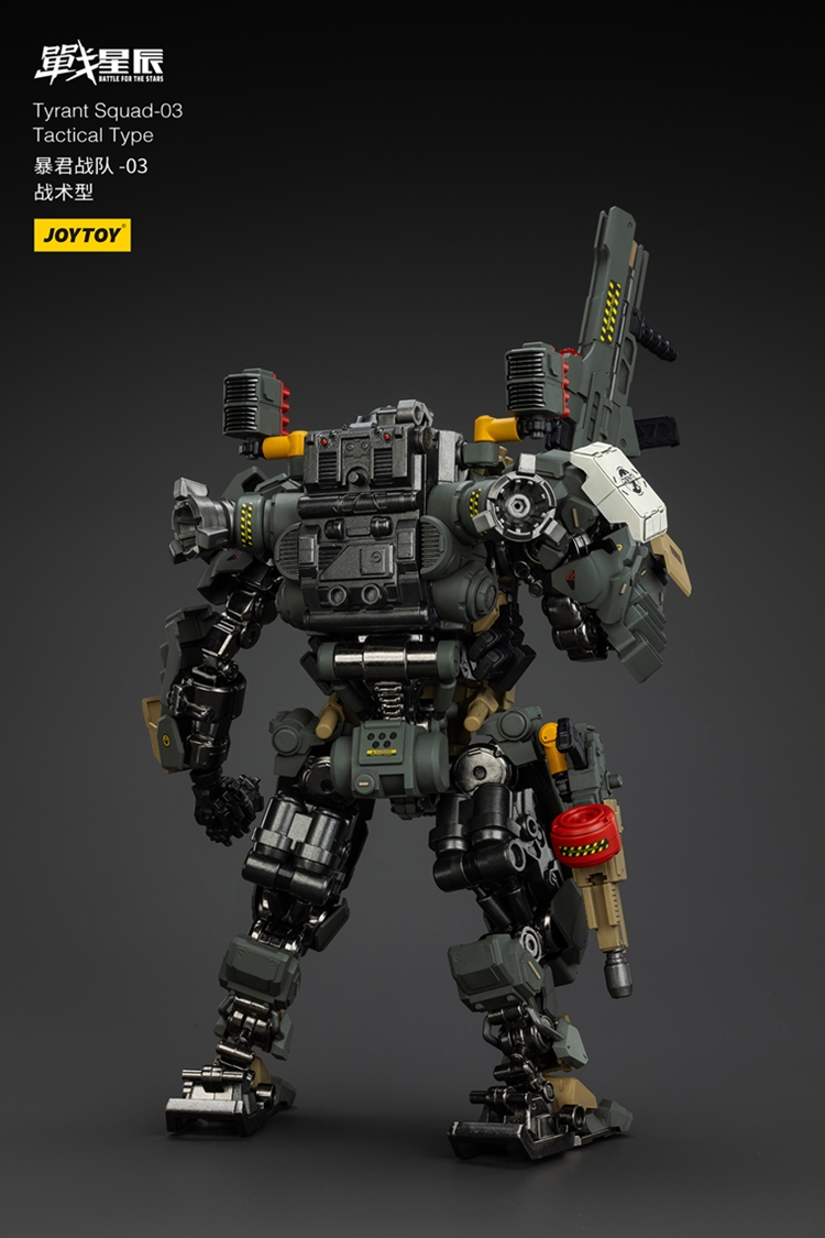 The Tyrant 03 Tactical Type is a model that has been changed in response to the changing battlefield situation. The most significant external difference is the removal of the Dark Source Power Greatsword used for melee combat, which is actually in line with the overall reduction of requirements for the pilot. These changes make the Tyrant 03 easier to deploy to more troops to perform a wider variety of tasks, hence the name Tactical Type.