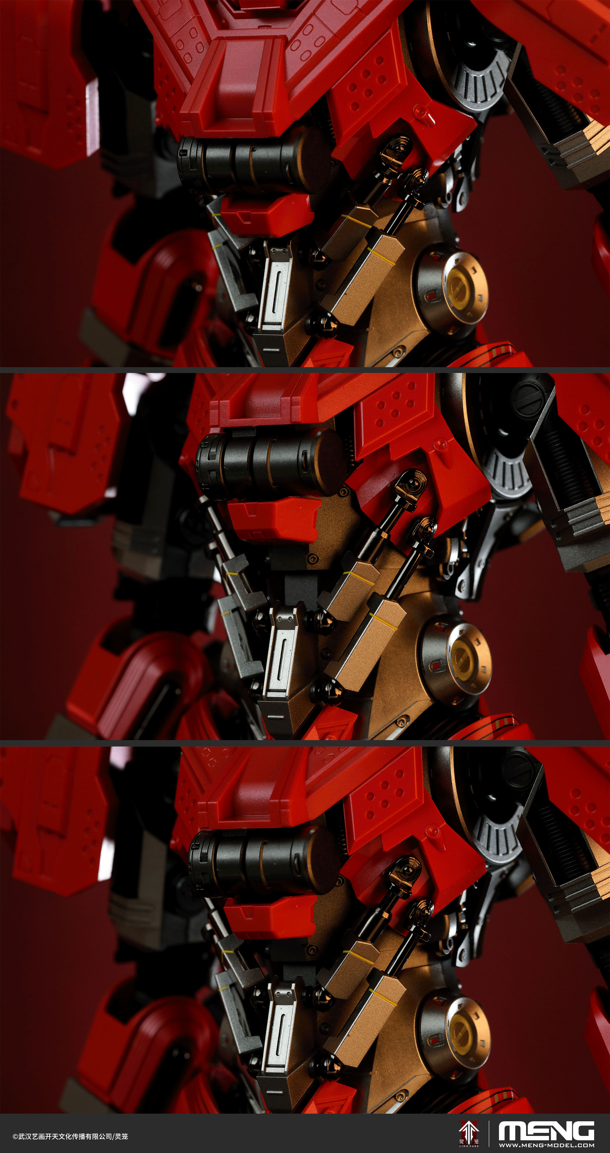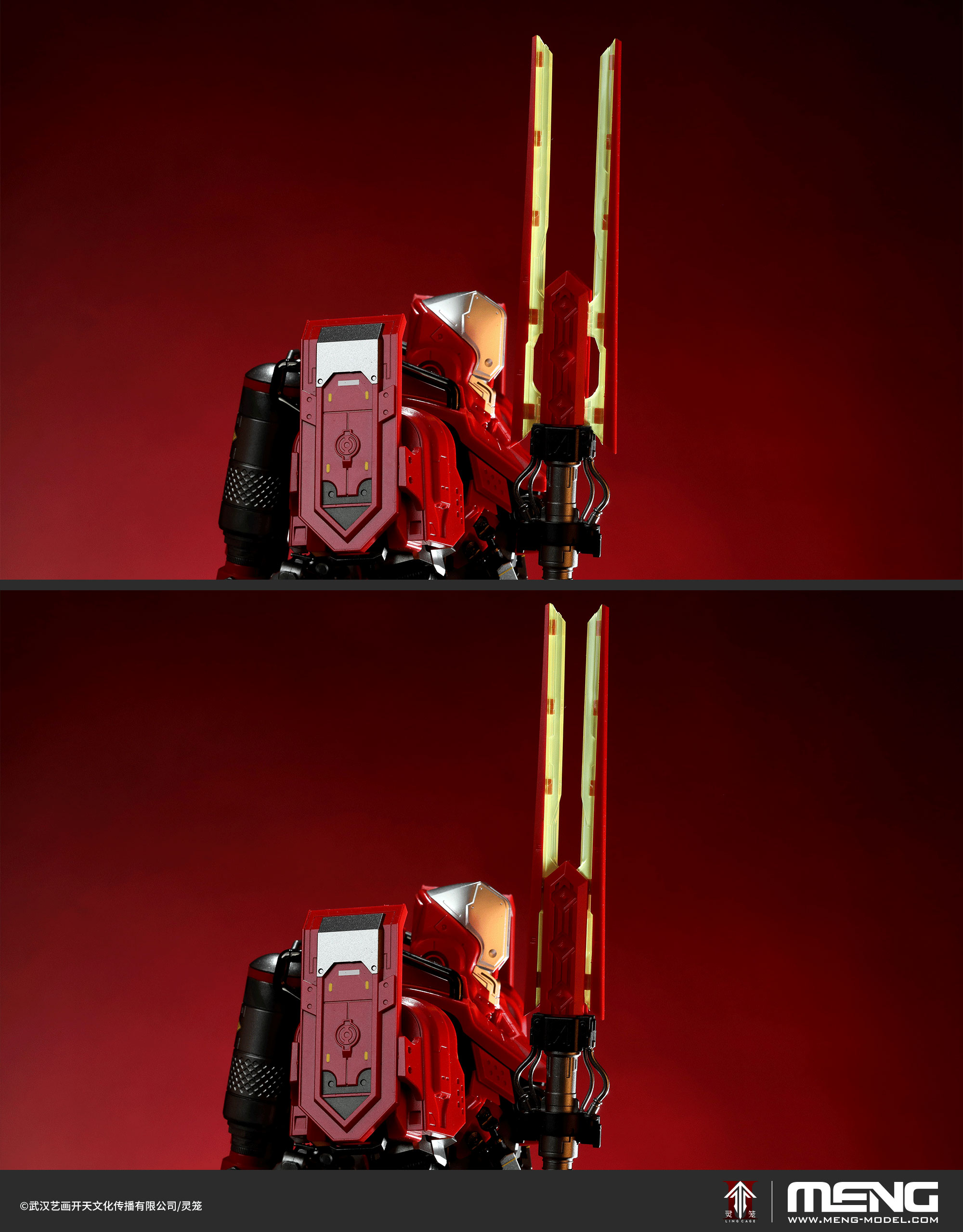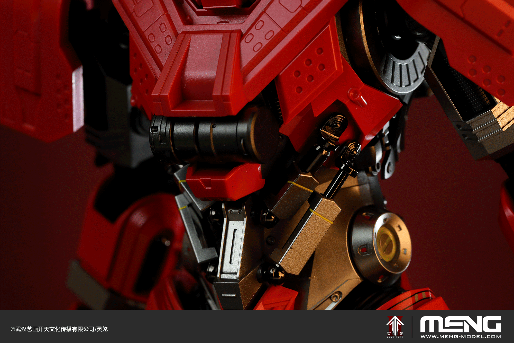 MECHA-009 *Ling Cage* MU-2 Heavy Unit Supervisor is a 1/9 scale color-separated snap-fit model kit authorized by YHKT ENTERTAINMENT and manufactured by MENG. The completed kit stands approximately 266mm tall and 170mm wide. The model accurately recreates the authoritative appearance of the Light Shadow Society's exclusive Heavy Unit from *Ling Cage*, with its large 1/9 scale and 27cm size providing a powerful visual impact. The kit features a snap-fit design for easy and quick assembly. The runners utilize pre-painted parts and hidden gate design, achieving a painted-finished look without the need for painting, and also includes exquisite water slide decals.