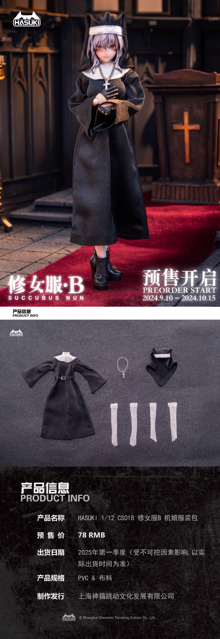 产品名称:HASUKI 1/12 CS018 修女服B 机娘服装包