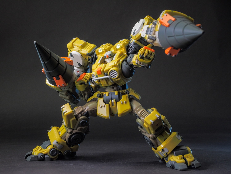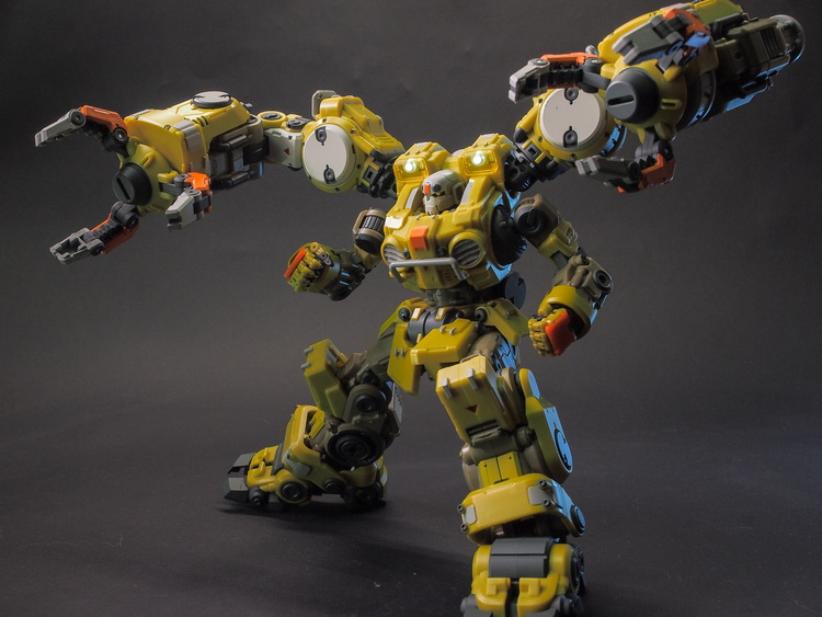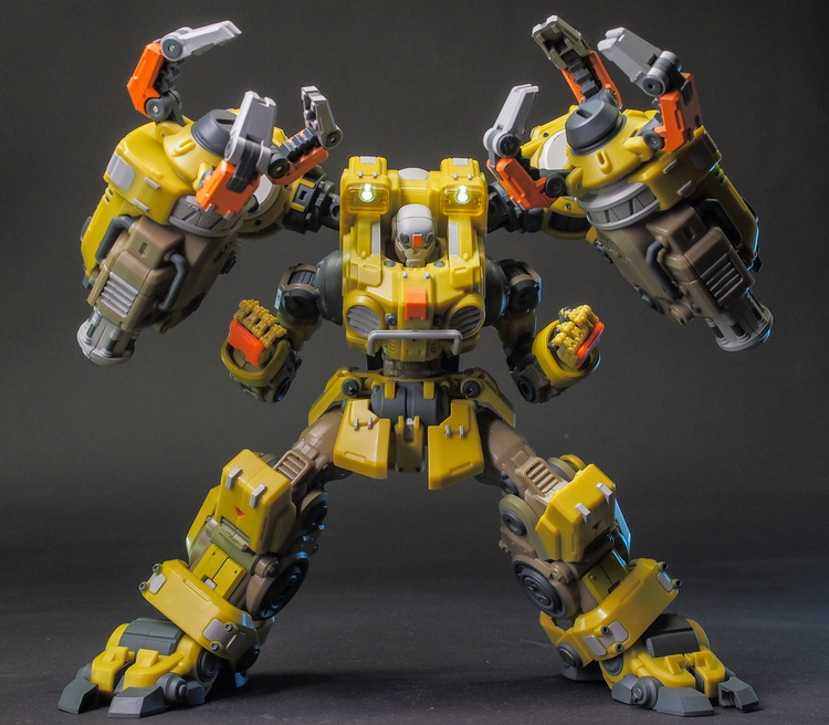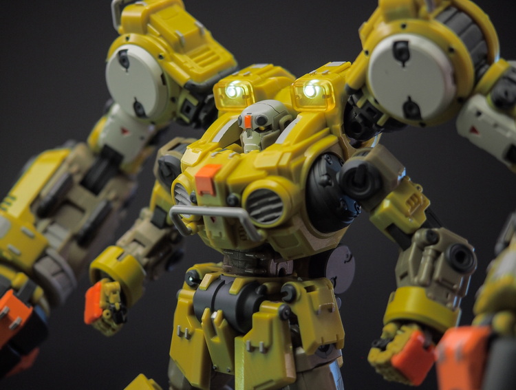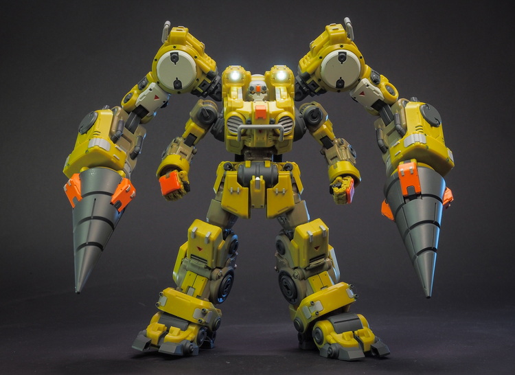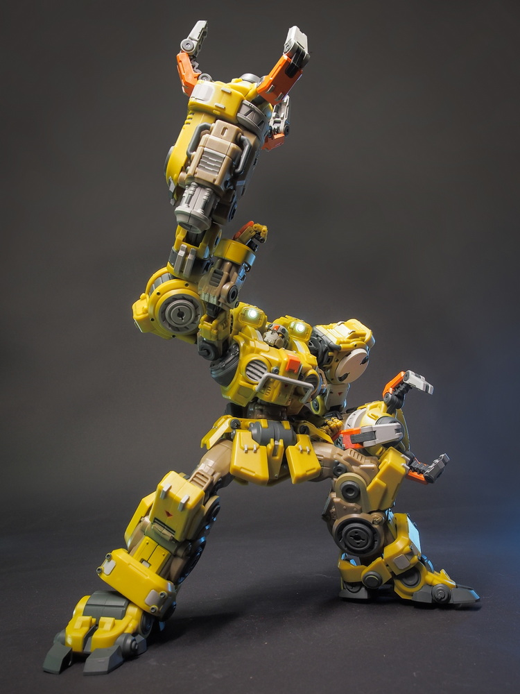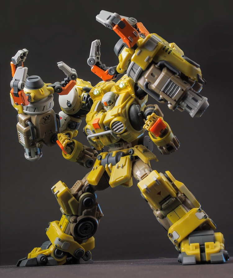 多个可动关节包括高可动手和弯腰关节,背后巨臂可以装载钻头,也可以配合A03武器昆虫互动。