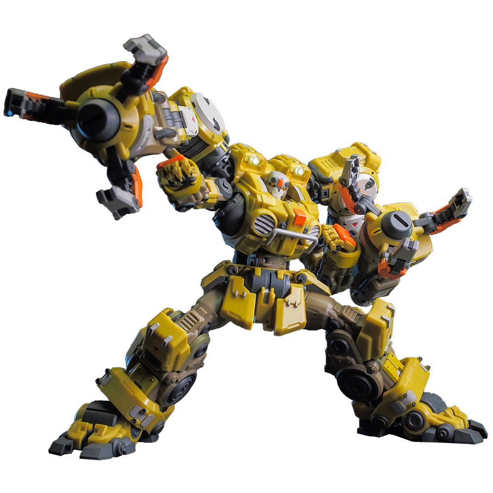 多个可动关节包括高可动手和弯腰关节,背后巨臂可以装载钻头,也可以配合A03武器昆虫互动。