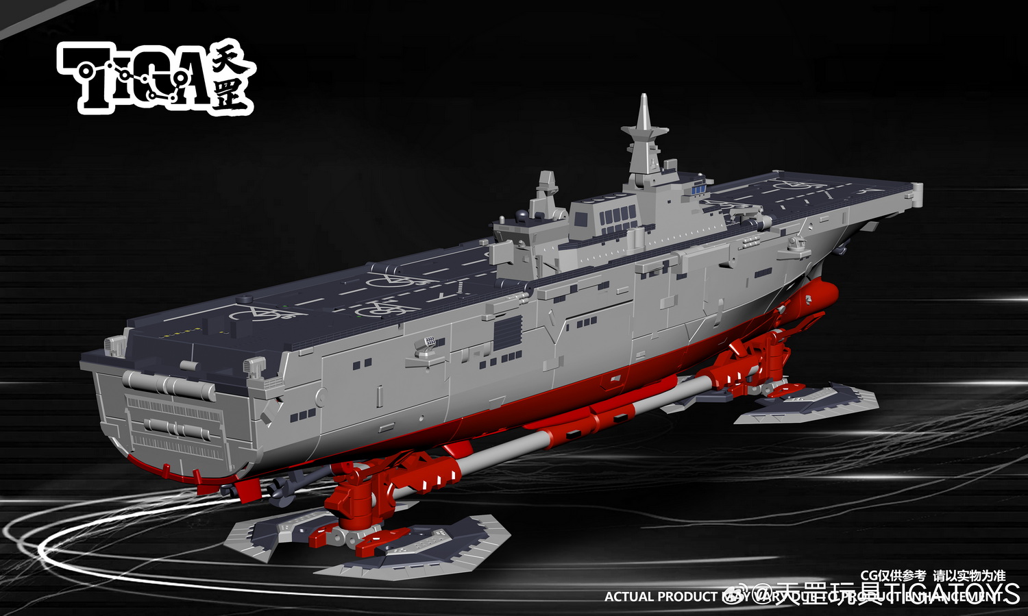 ·本产品为一体变形可动成品,后续会增加更多配件和特效件:近防与导弹特效件、直升机、气垫登陆艇和两栖突击车等。