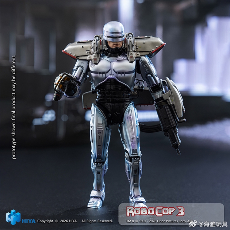 全新EXQUISITE SUPER系列1/12比例 机械战警 可动人偶,全高约16.5CM。外观形象基于《机械战警3》(1993) 剧中造型精心打造,忠实还原这位未来执法者冷峻而充满压迫感的标志性形象。全身装甲以偏蓝金属质感涂装呈现,细腻还原电影中厚重而真实观感。合金部件的运用进一步提升整体分量感,带来更加扎实的把玩手感。配备支持大幅度可动的关节结构设计,可轻松完成站立、射击及战斗等多种姿态。