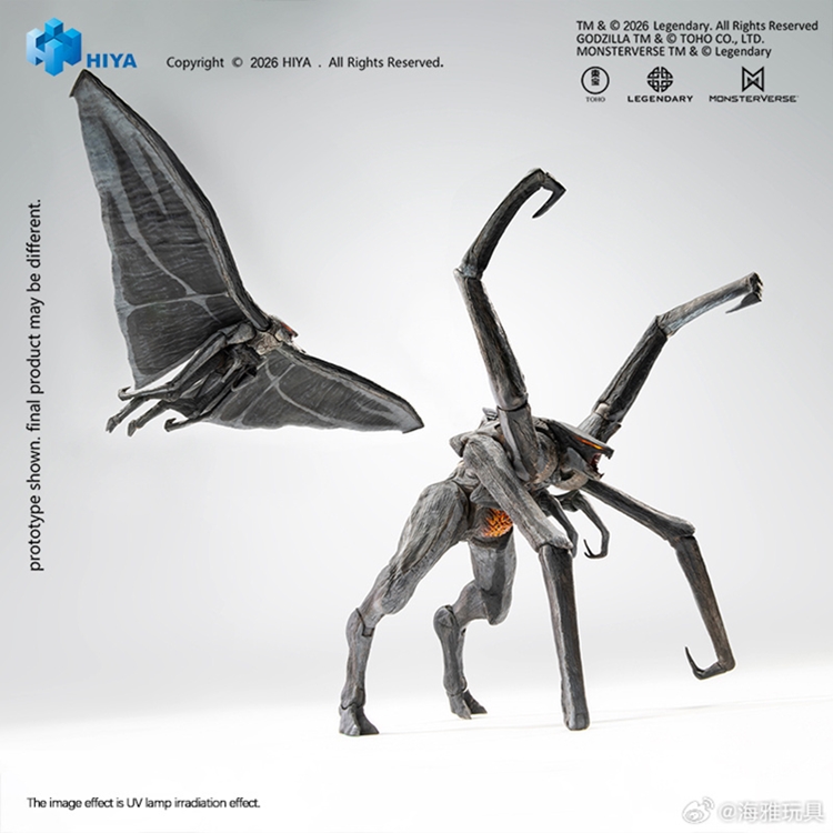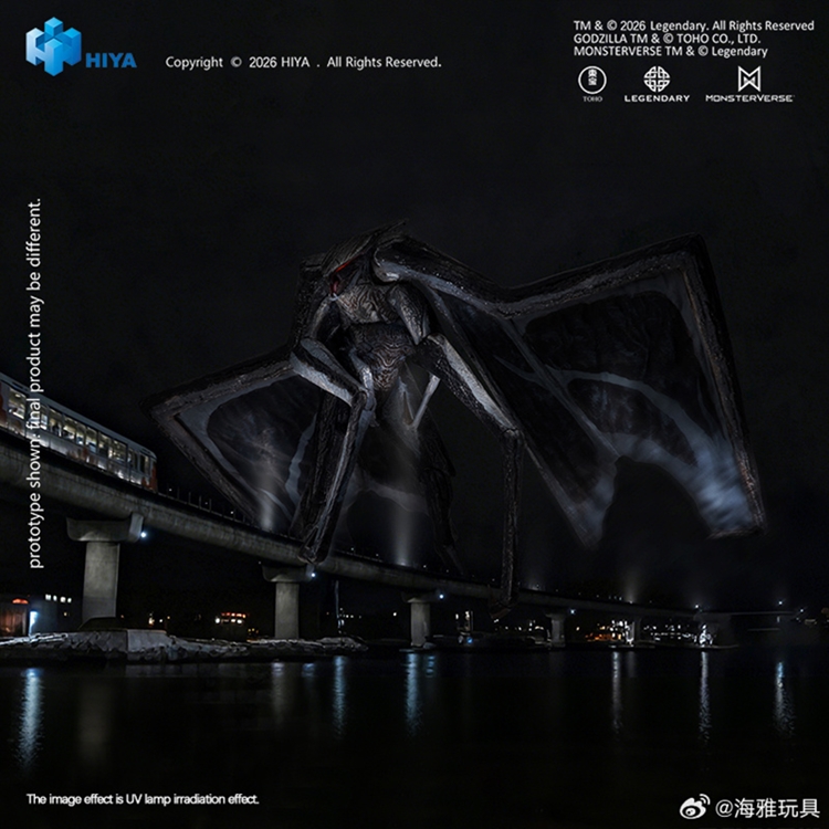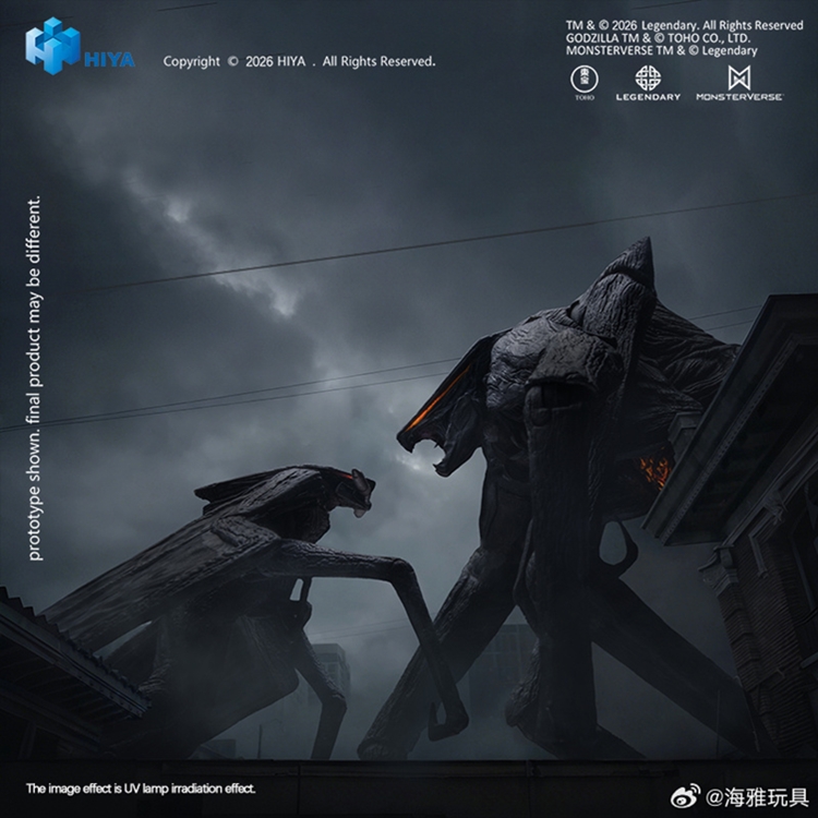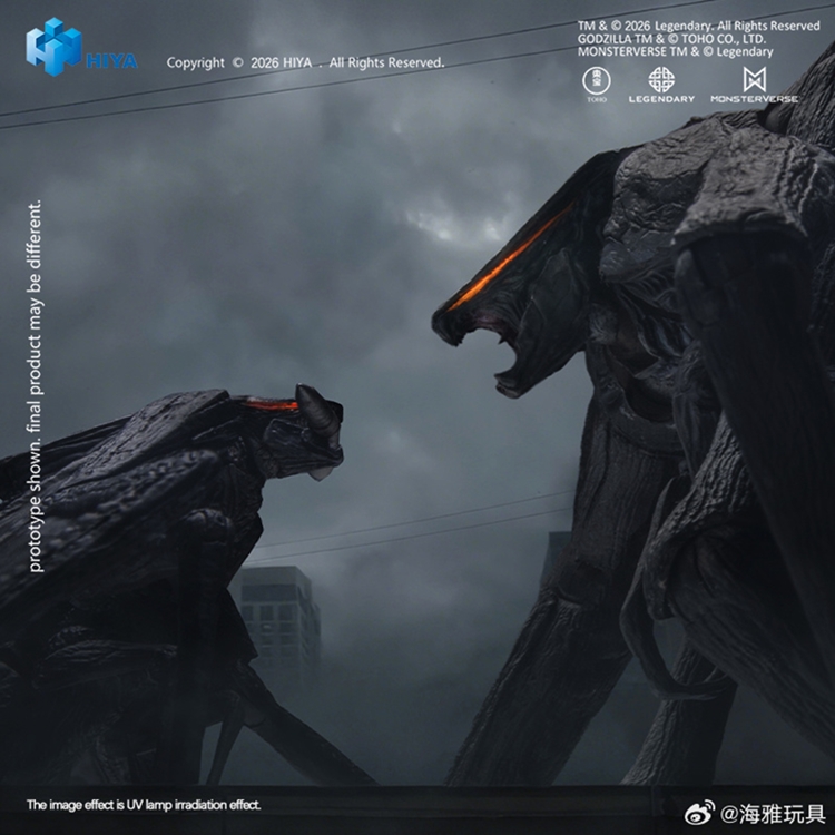 这款全新EXQUISITE BASIC系列《哥斯拉》(2014)雌雄穆托套装参考影片原始CG设定,将两只极具压迫感的远古泰坦完整立体呈现,还原其在电影中的体态差异与结构特征。雌穆托全高约15CM,雄穆托全高约11CM,翅膀伸展开后全长约33CM。整体以深灰至炭黑色为基础色调,眼部新增荧光涂装处理。不同于初版雌穆托可动手办,本次雌穆托腹部区域新增荧光涂装,在UV灯照射下可呈现更具辨识度的荧光效果,进一步强化剧中雌穆托腹部区域的特殊视觉表现。两对巨大的前肢等细节均一一还原,细致上色进一步凸显其真实生物感。