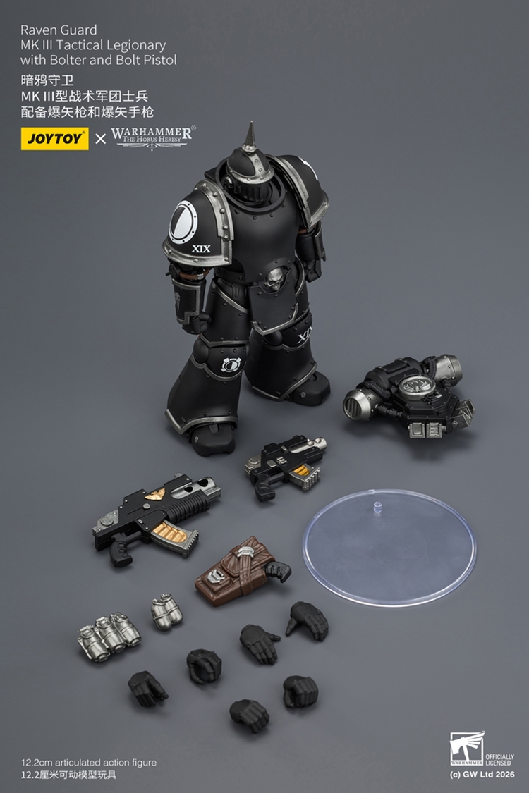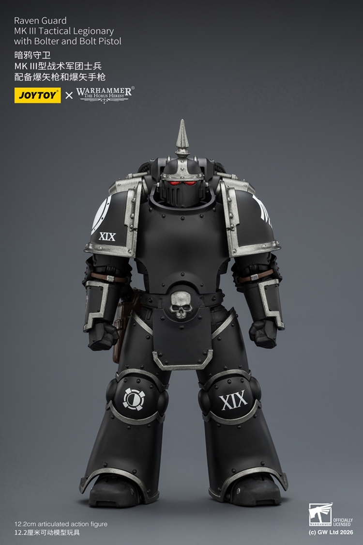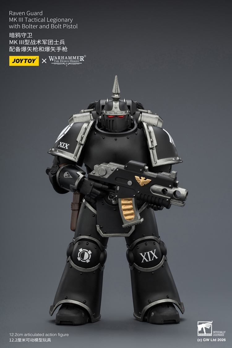 【2026-04-29】Preorder – JOYTOY JT03943 1/18 Warhammer “The Horus Heresy” Raven Guard MK III Tactical Legionary with Bolter and Bolt Pistol