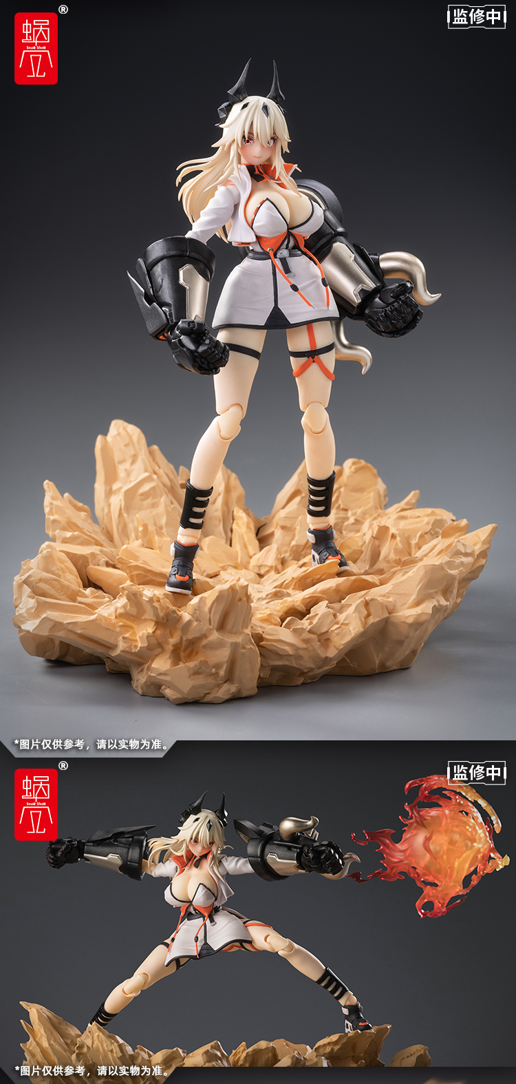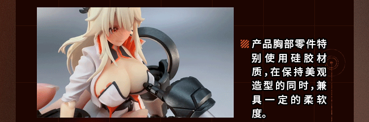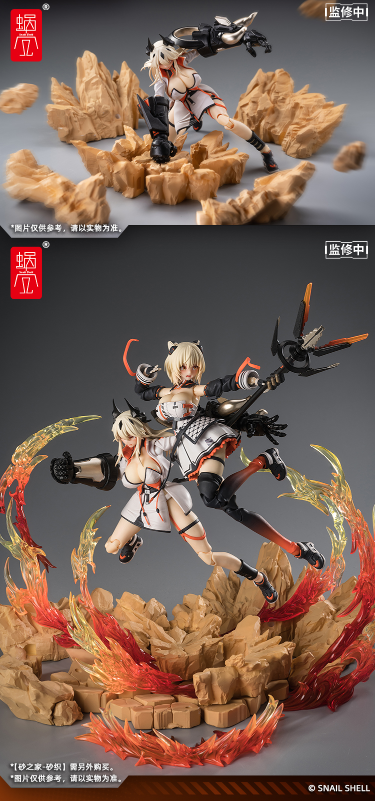 本次产品不仅首次尝试了大尺寸五指全可动拳套【啮鉄】以及还原了妹妹的可变形法杖【毕方】,更在人物的胸部采用了「硅胶材质」。 而且还附带了份量满满堪称豪华的特效件地台!!特效件不仅可以自由拆分,还可以组合在一起;除此之外竟然还能够这样那样.......总之请看图。